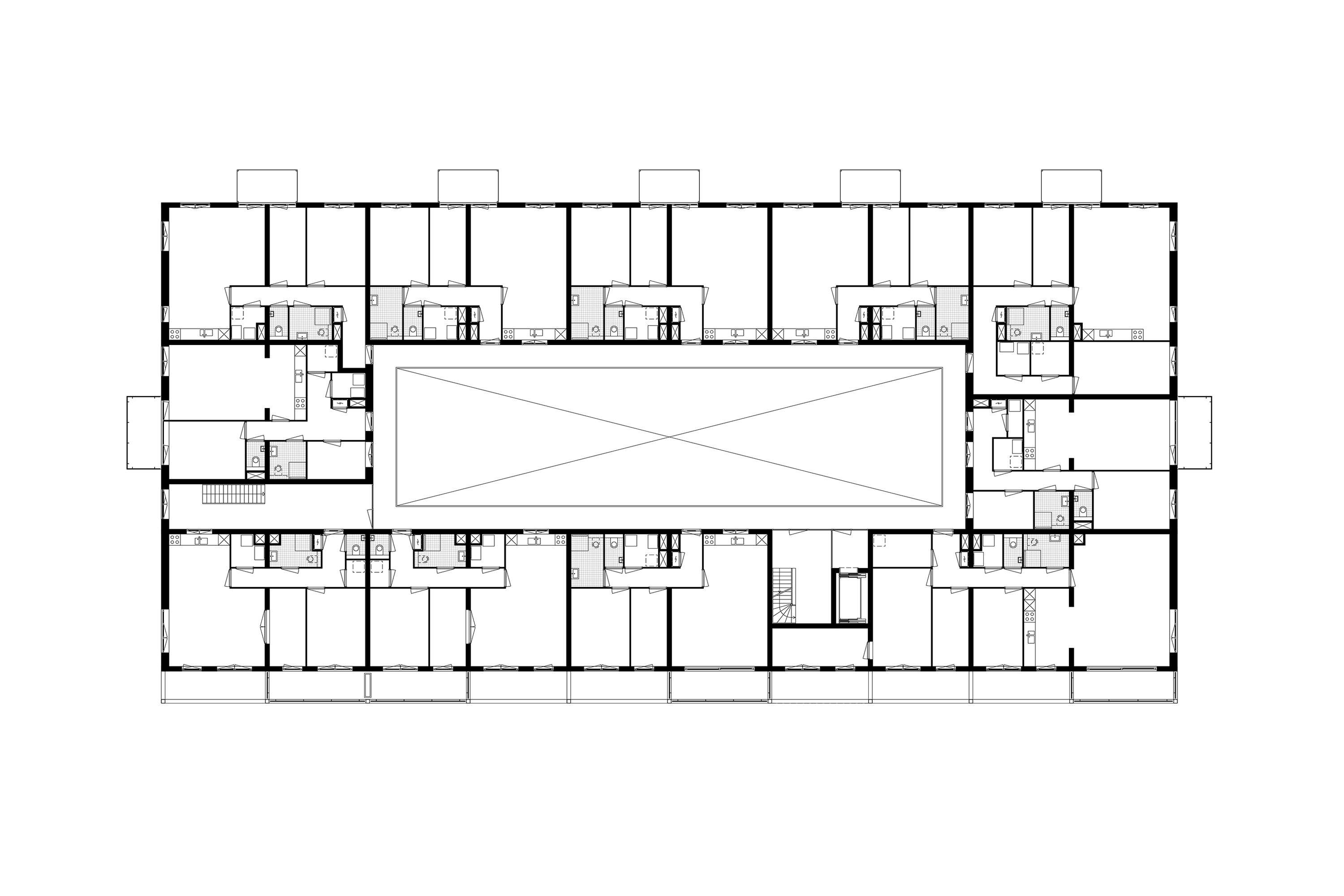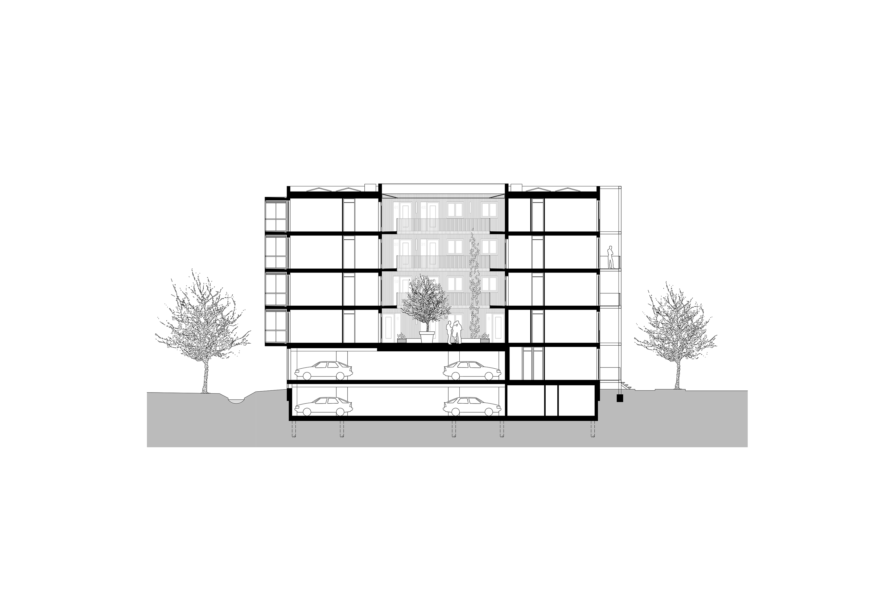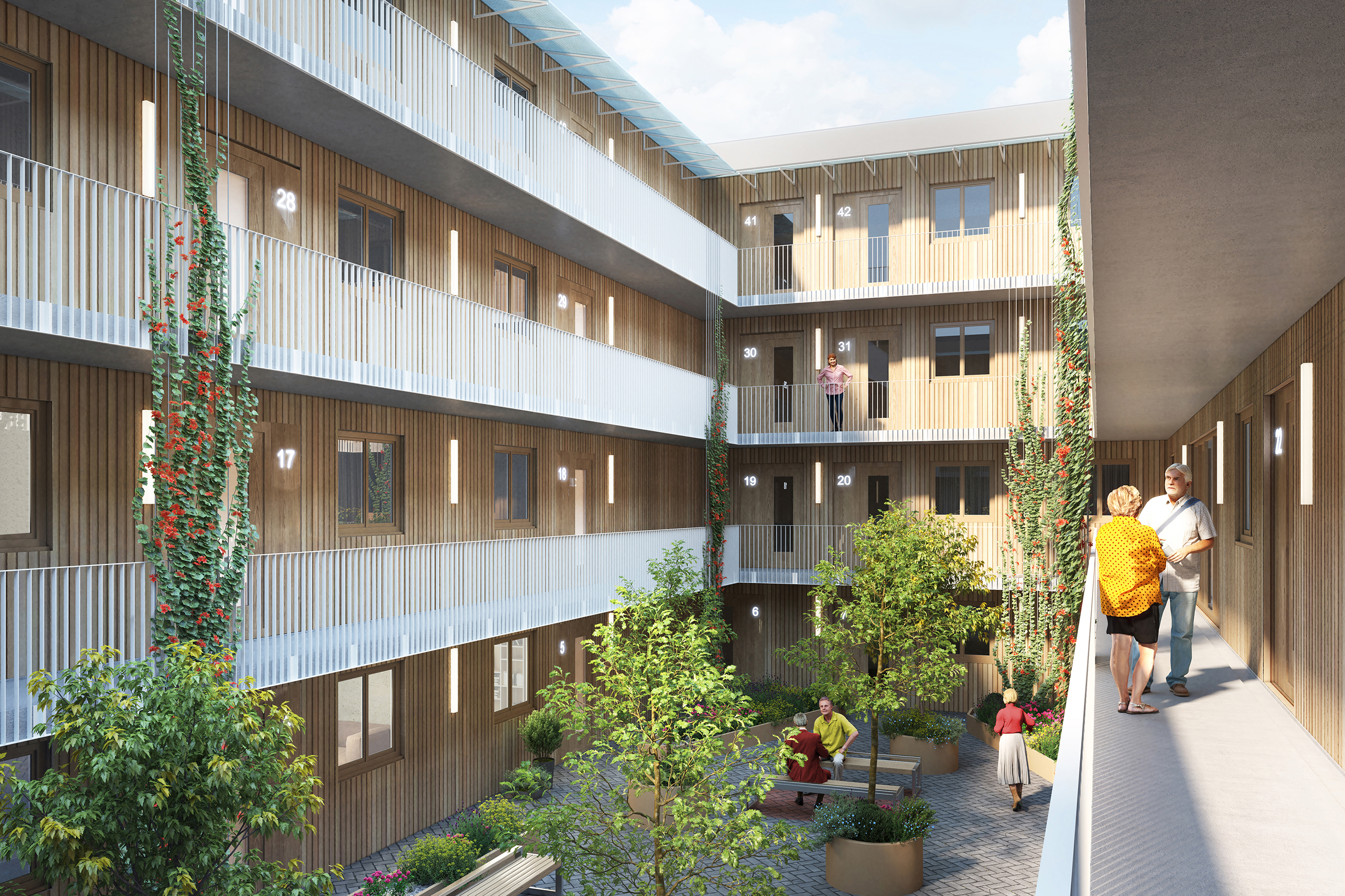 Het ruime binnenhof is het gemeenschappelijke hart van het gebouw. Alle 48 appartementen worden via het binnenhof en de galerijen ontsloten. De inrichting van deze collectieve ruimte nodigt bewoners uit om er te verblijven en elkaar te ontmoeten. De beplanting in het binnenhof en rondom de nieuwbouw kent een grote diversiteit en is door Loohorst Landscape zodanig gekozen dat deze een natuurlijke habitat voor talrijke insecten en vogels biedt.