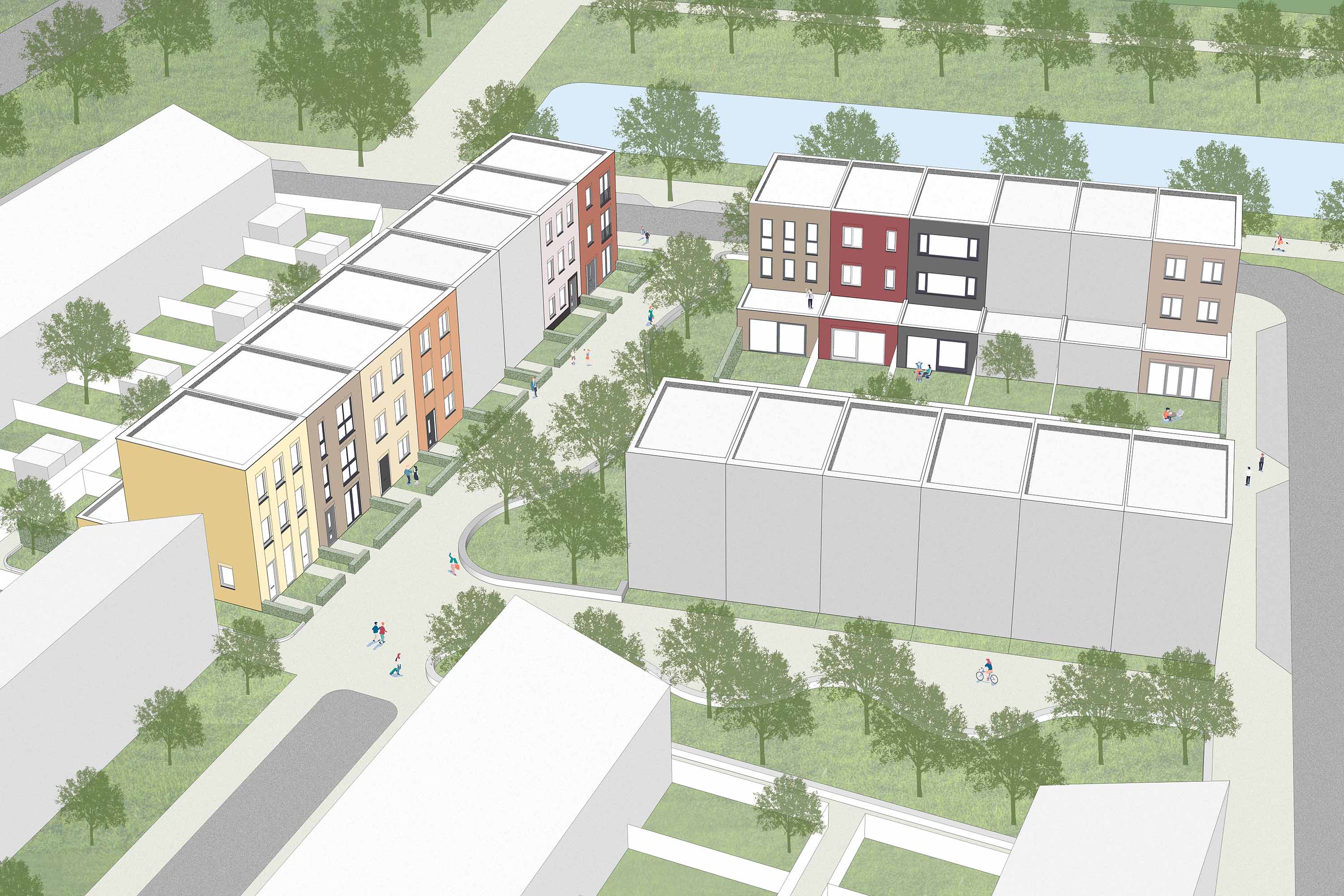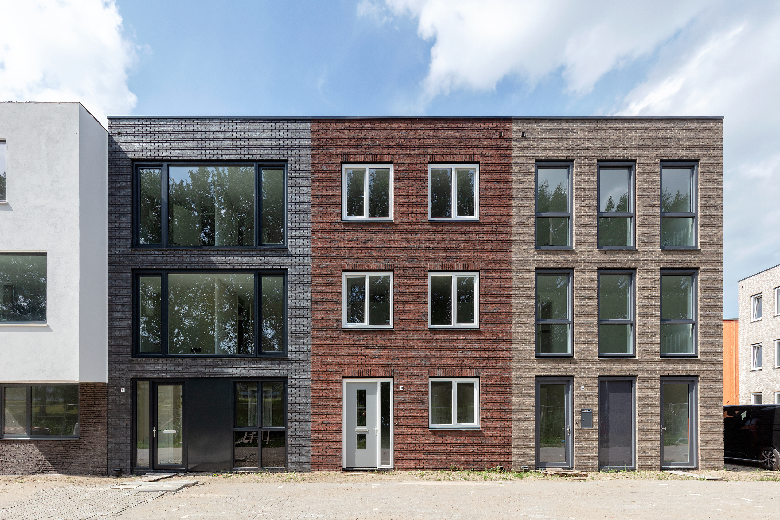 Tegelijkertijd is er gezocht naar een goede balans tussen variƫrende en repeterende elementen. De woningen werden in hetzelfde bouwsysteem in prefab beton uitgevoerd en daar waar mogelijk zijn gecombineerde heipalen en funderingen toegepast. Alle gevels zijn uitgewerkt in metselwerk, kunststof kozijnen en hardstenen raamdorpels in diverse kleuren. Dankzij deze werkwijze was het mogelijk om de woningen voor een bijzonder aantrekkelijke bouwprijs te realiseren.