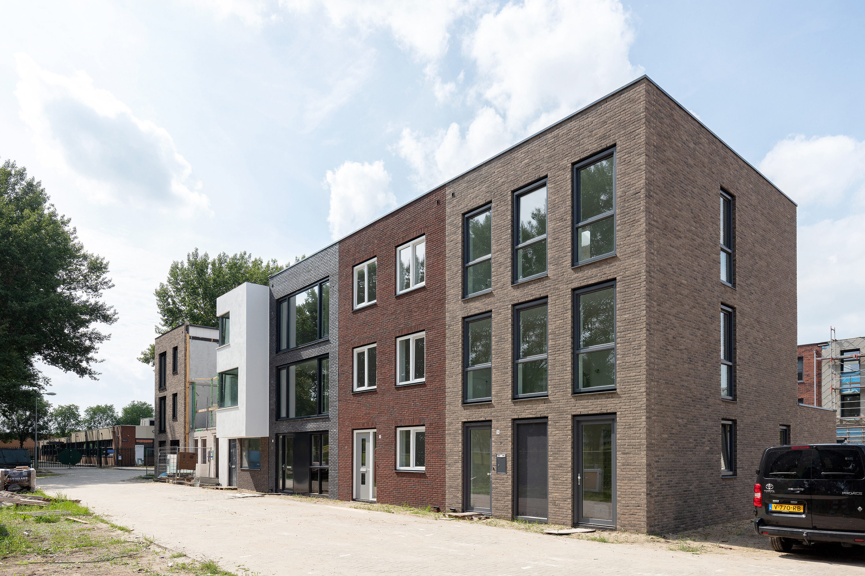 Op de locatie van een voormalige school in Amsterdam Zuid-Oost heeft de gemeente 20 zelfbouwkavels voor de bouw van individuele eengezinswoningen uitgegeven. Ons bureau heeft een bouwgroep van 10 kaveleigenaren begeleidt en de ontwerpen uitgewerkt. Deze woningen werden door aannemingsbedrijf Lokhorst Bouw gerealiseerd.
