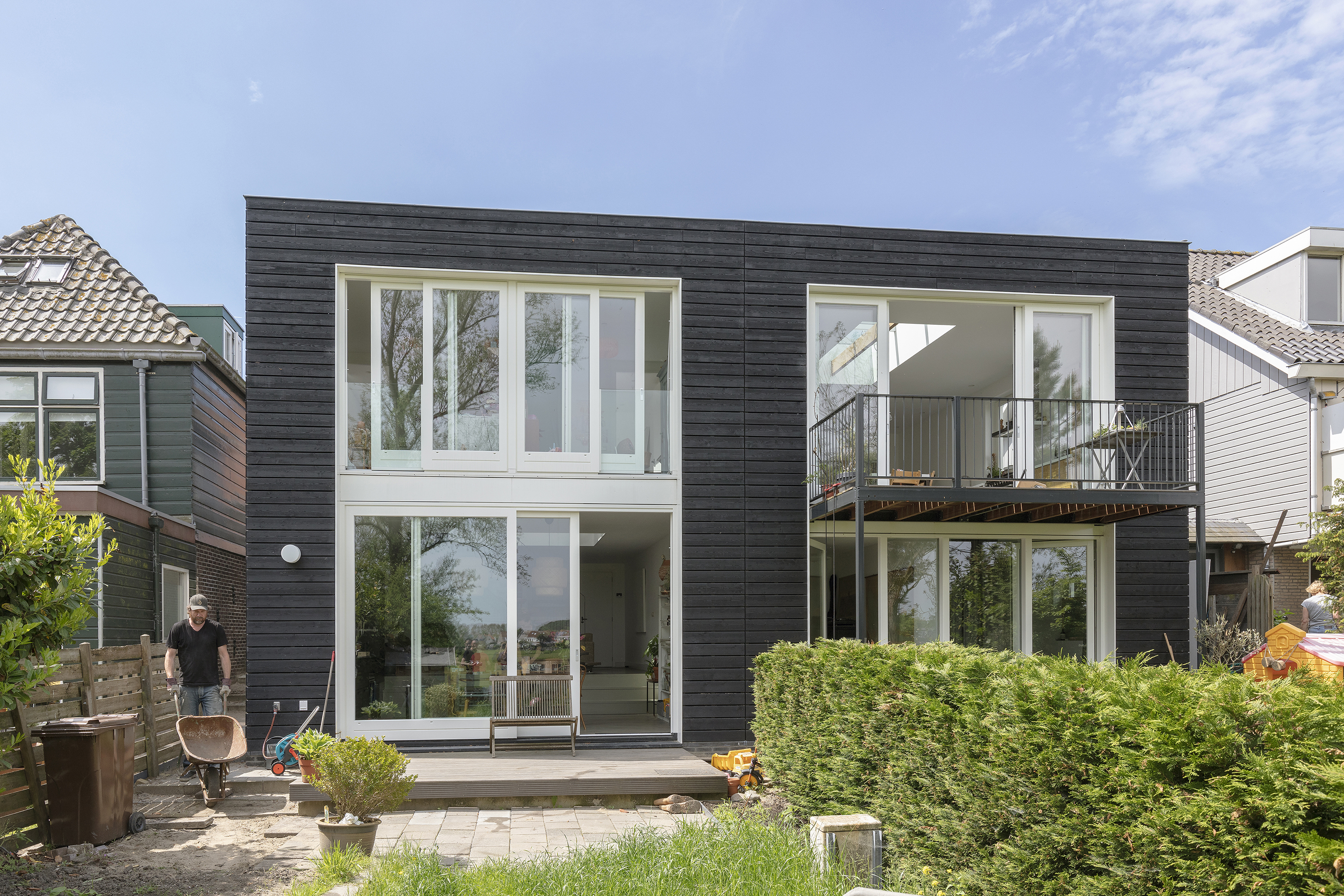 De Landsmeerderdijk in Amsterdam-Noord heeft grotendeels nog steeds zijn oorspronkelijke kleinschalige bebouwing. Twee gezinnen kochten hier twee aan elkaar grenzende dijkwoningen uit 1910. Deze woningen waren erg klein en bouwkundig in zeer slechte staat. Het bestemmingsplan gaf wel de mogelijkheid om deze woningen te voorzien van een 2-laagse uitbreiding aan de achterzijde met een diepte van 6 m.