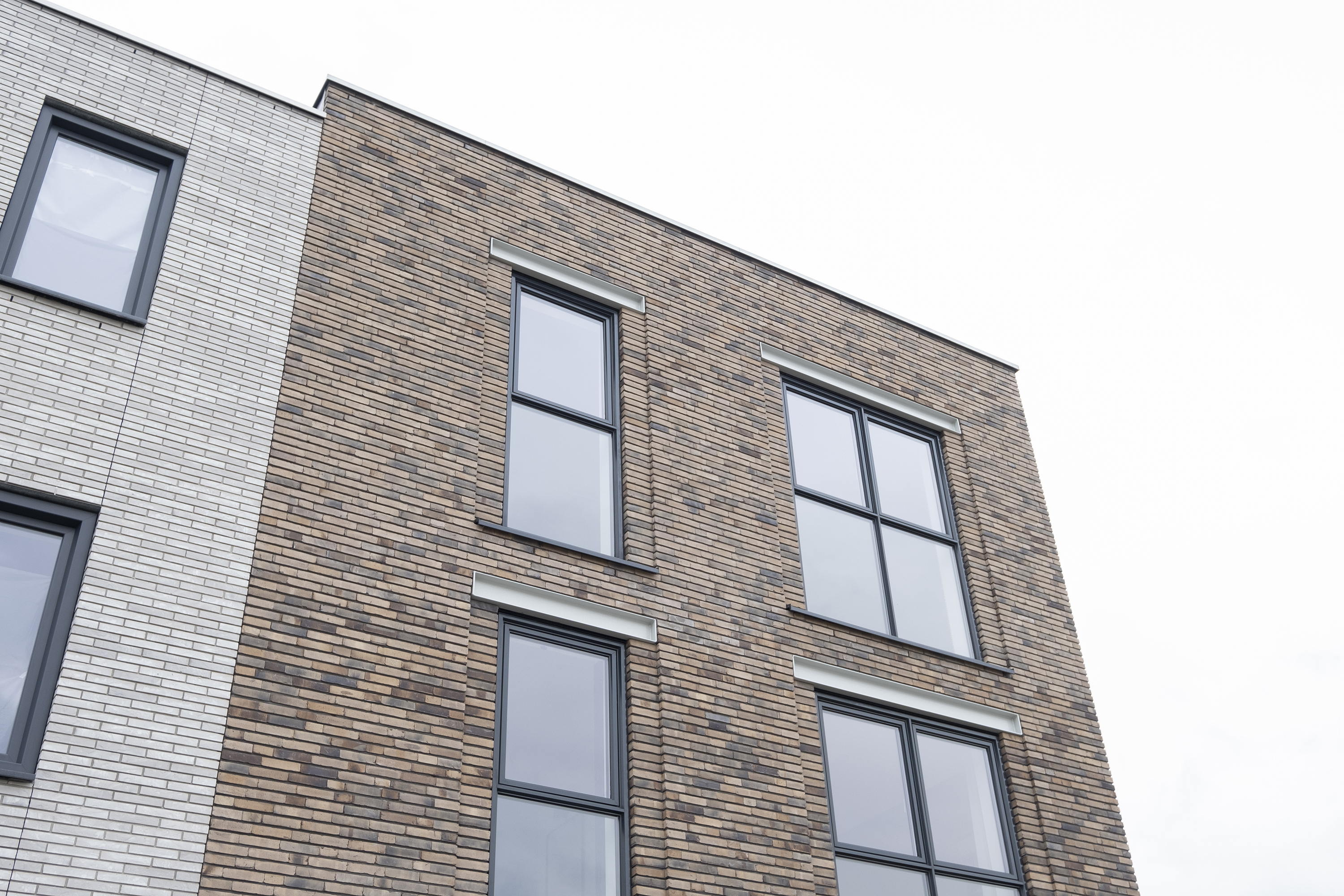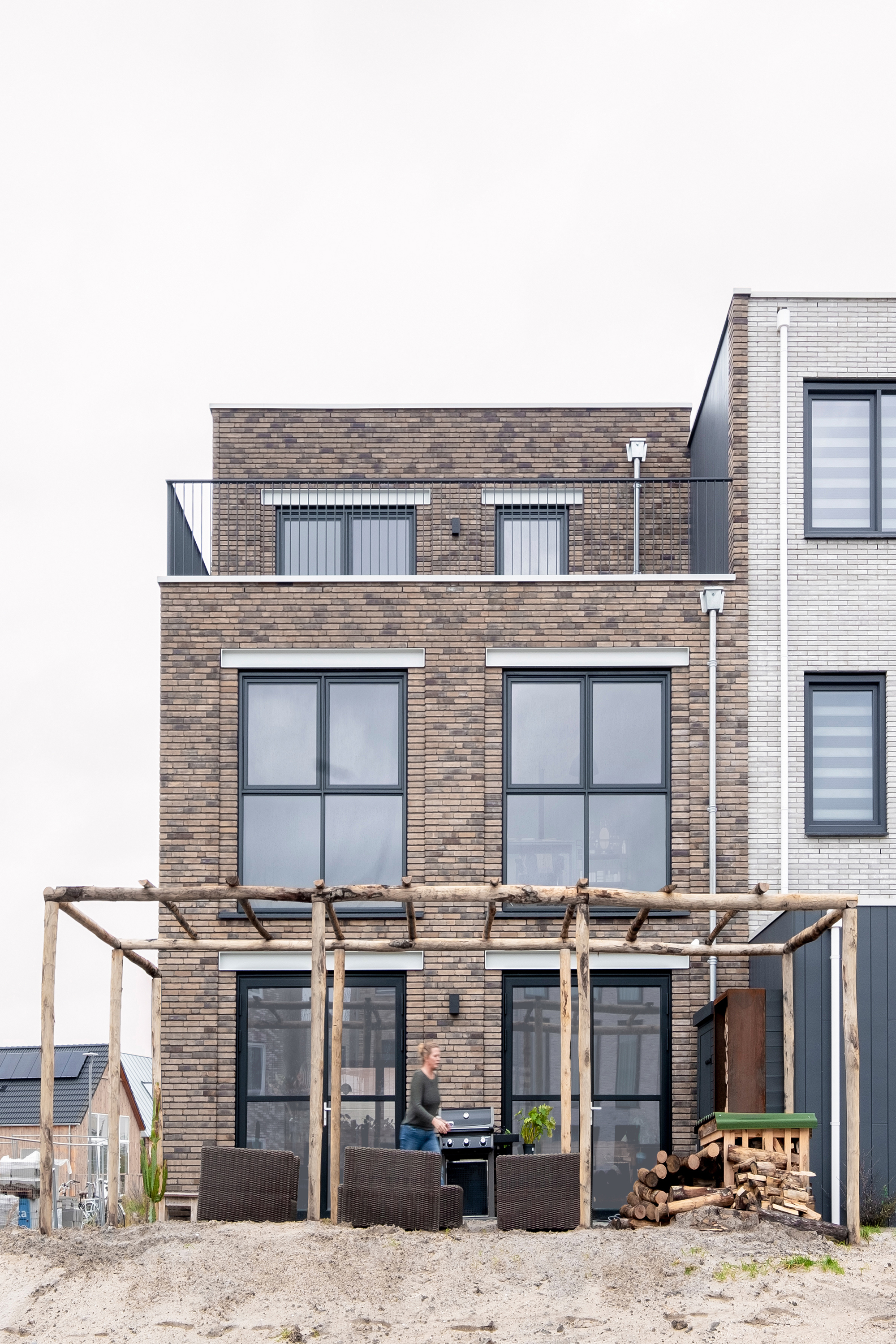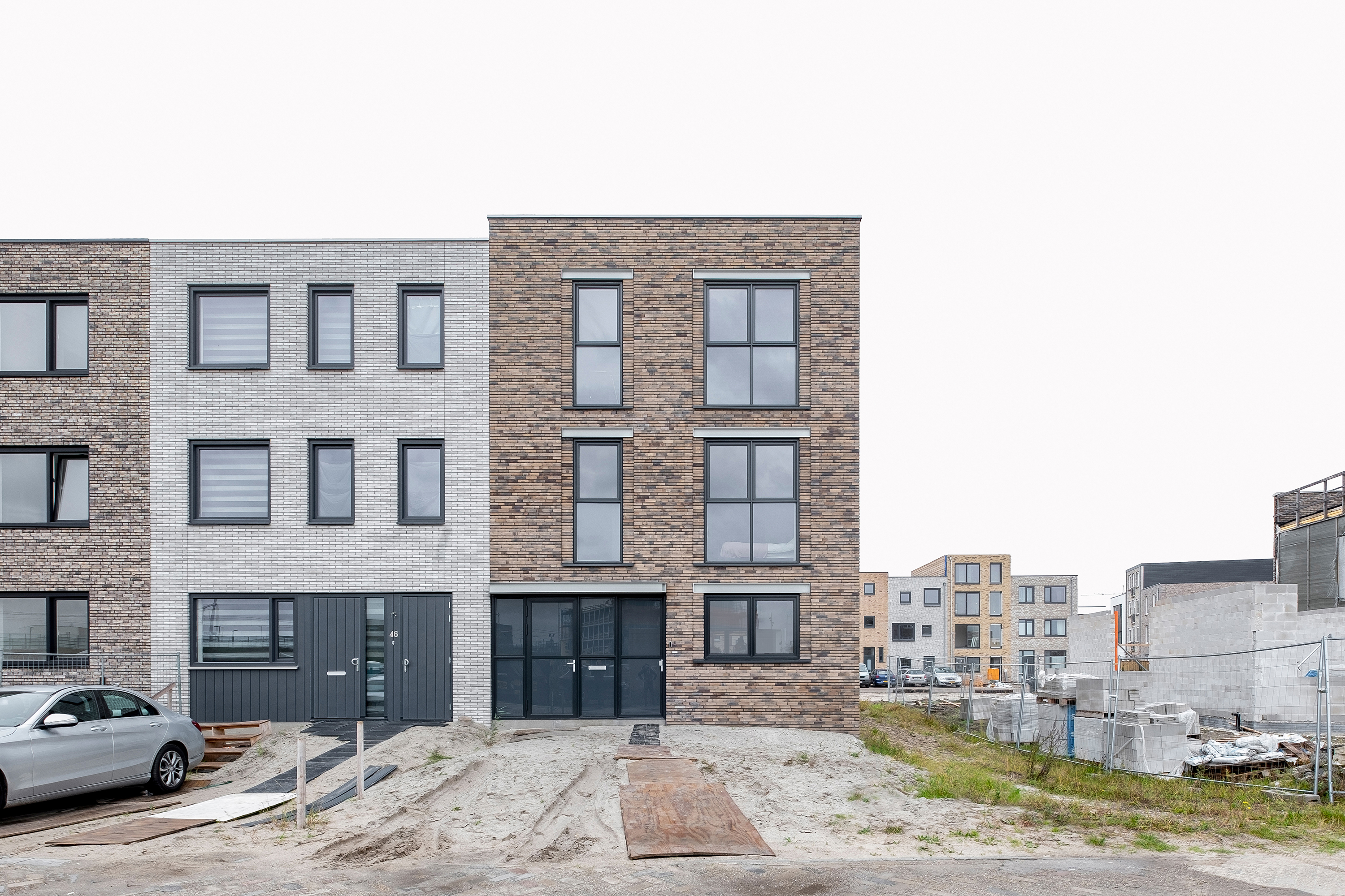 In overeenstemming met de richtlijnen voor de nieuwe wijk Zandpoort is deze hoekwoning afgewerkt met een lichtbruine gevelsteen welke goed aansluit bij het duinlandschap van de omgeving. De slanke aluminium kozijnen, de in het zicht gehouden stalen gevellateien en de subtiele verspringingen in het gevelmetselwerk zorgen voor een industriële en verfijnde uitstraling.