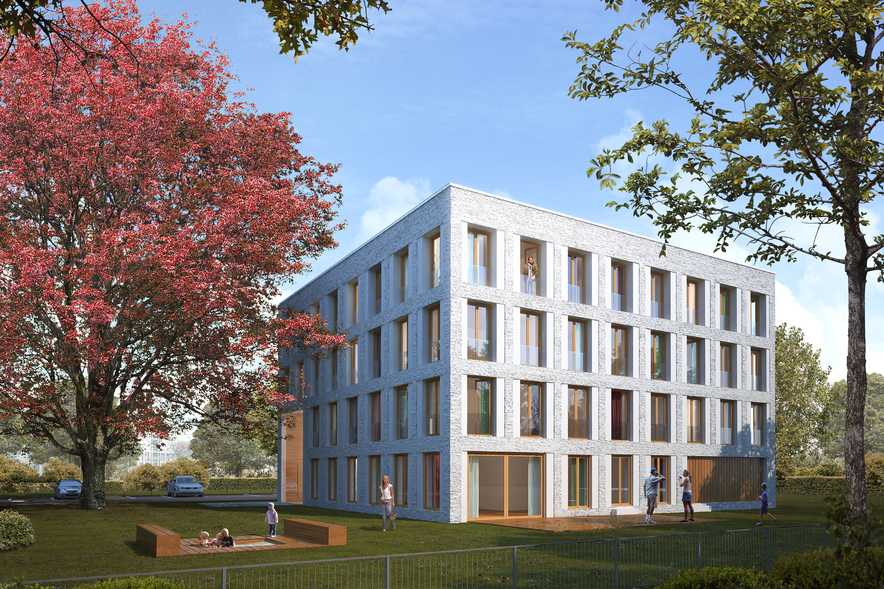 De vierkante basisvorm van het gebouw geeft alle bewoners een gelijkwaardige relatie met het groen en kent daarbij de meest energiezuinige verhouding tussen gevel en inhoud. Om goed in te kunnen spelen op de zeer verschillende cliƫnten (alleenstaande bewoners, stellen, moeders met kinderen) zijn vier verschillende woningtypes ontworpen die elk met een of twee wisselkamers uitgebreid kunnen worden.