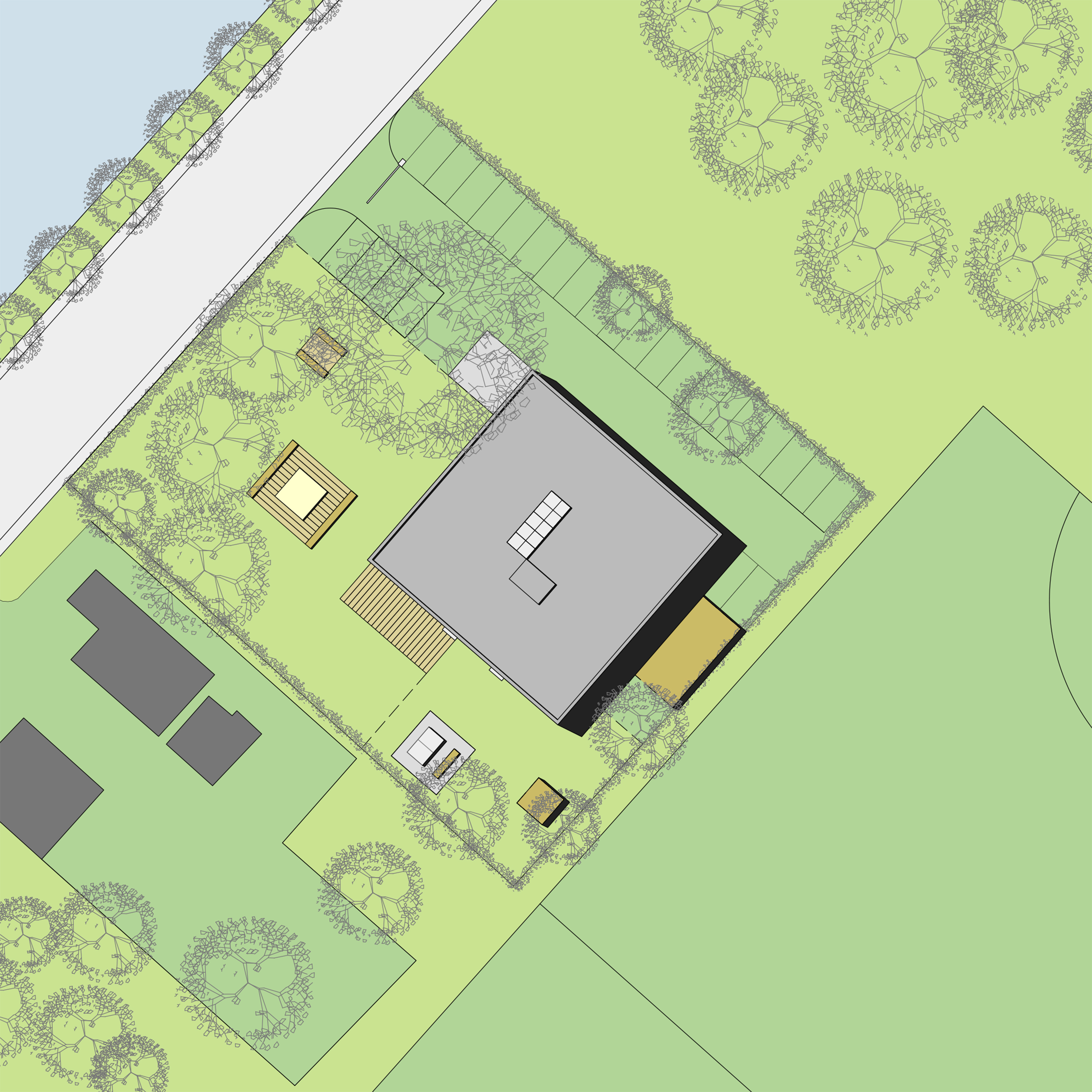 Een belangrijk uitgangspunt was het scheppen van een plek die geborgenheid, rust en optimisme uitstraalt. Door zijn groene omgeving levert de locatie aan de Hoofdvaart hiervoor gunstige randvoorwaarden. Op het kavel vormen een prachtige beuk en enkele andere oude bomen een voor de Haarlemmermeer unieke kwaliteit. De locatie wordt daarom ingericht als een besloten park.