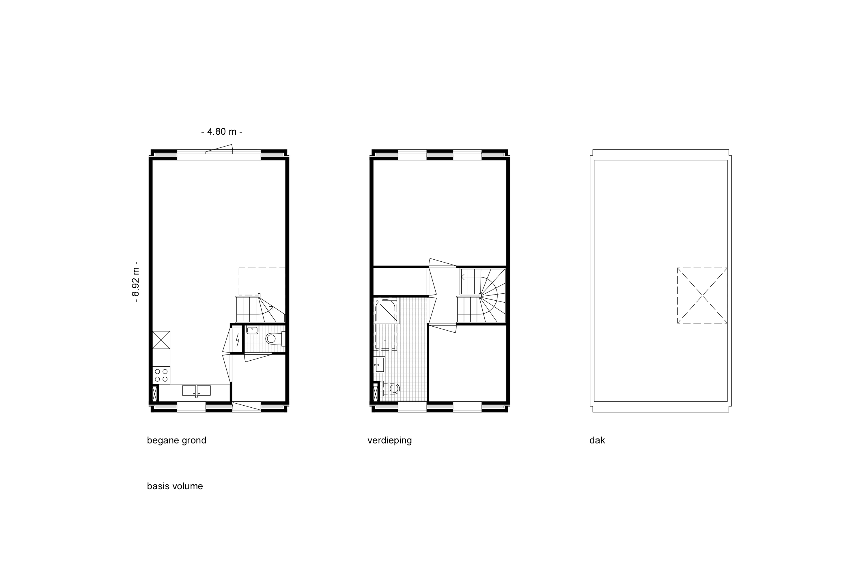 De basiswoning met twee slaapkamers heeft een woonoppervlakte van 74 m² en is reeds voorzien van een trapsparing in het platte dak en een aantal heipalen achter de woning. Dankzij deze voorzieningen kan de basiswoning in de toekomst eenvoudig worden uitgebreid en stap voor stap groeien tot een volwaardige gezinswoning met een woonoppervlakte van 132 m² en zes slaapkamers. Ook kan de ruime badkamer op de verdieping later worden voorzien van een ligbad en een extra wc.